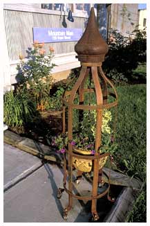 Steel trellis sculptures for transforming your world!This graceful tower steel trellis will add sweeping vertical lines to your landscape design or garden. Made from welded steel and topped with a unique cast iron pinnacle, this sturdy trellis will withstand all weather extremes and support your flowering or fruiting vines, both annual and perennial, for many years of trouble free garden service. We produce both interior and exterior trellis models and both are available lighted or unlighted. Our lighted units are ideal for entry or garden lights and are UL approved. Interior models are equipped with a planter support base and non-marring rubber casters for ease of movement. |